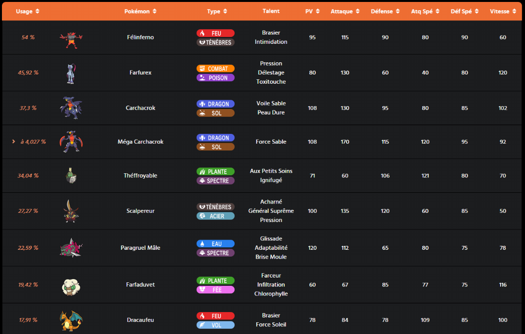 En ce début de règlement, le méta est très instable. On note toutefois quelques grandes tendances pour ce retour des Méga-Évolutions. Commençons par noter que les statistiques d’utilisation sont présentes dans le jeu, ce qui est bien pratique.